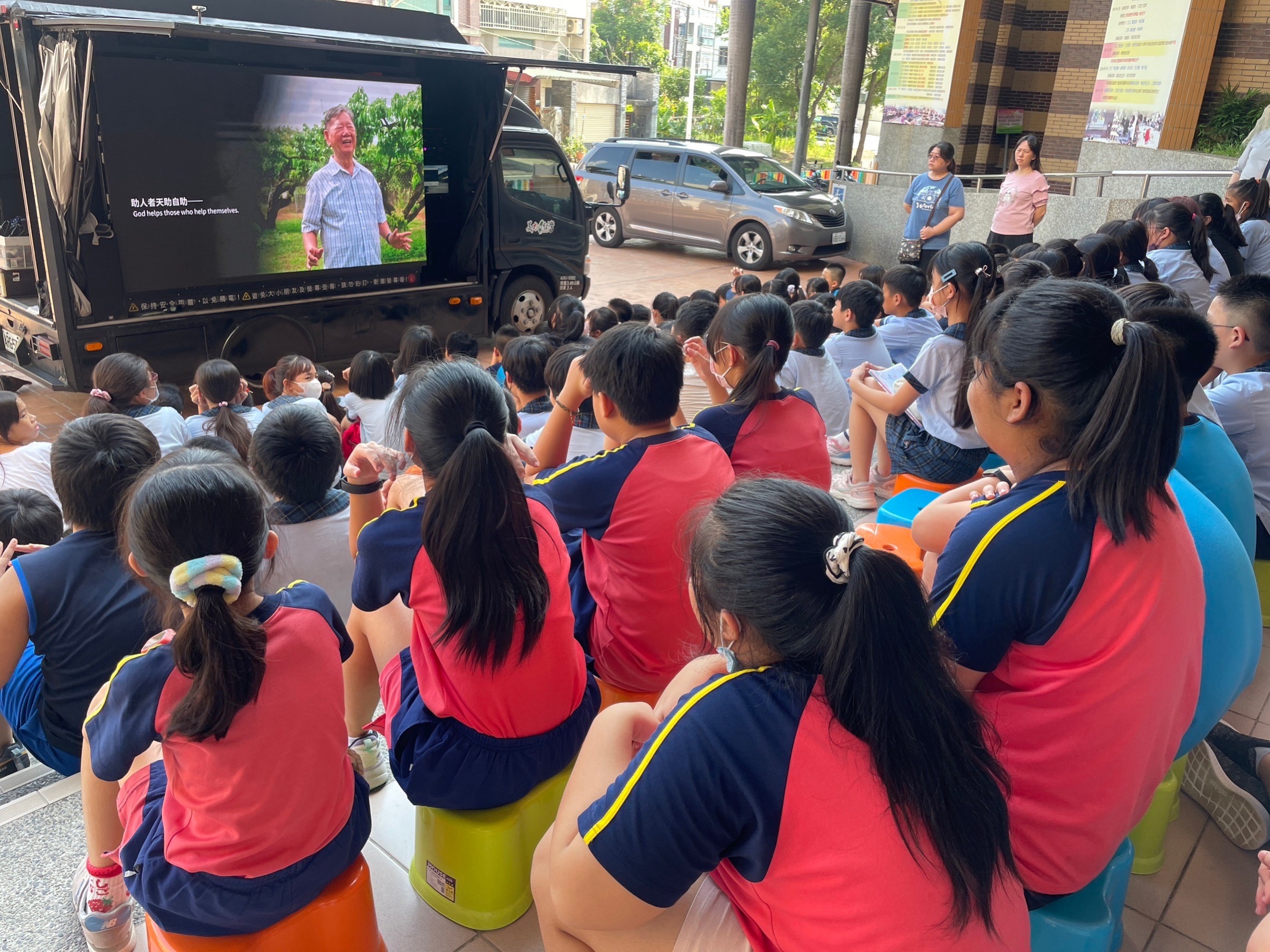 ▲「美力台灣3D電影車」開進新港鄉校園,開啟孩子對家鄉的認同,也打開對世界的憧憬。