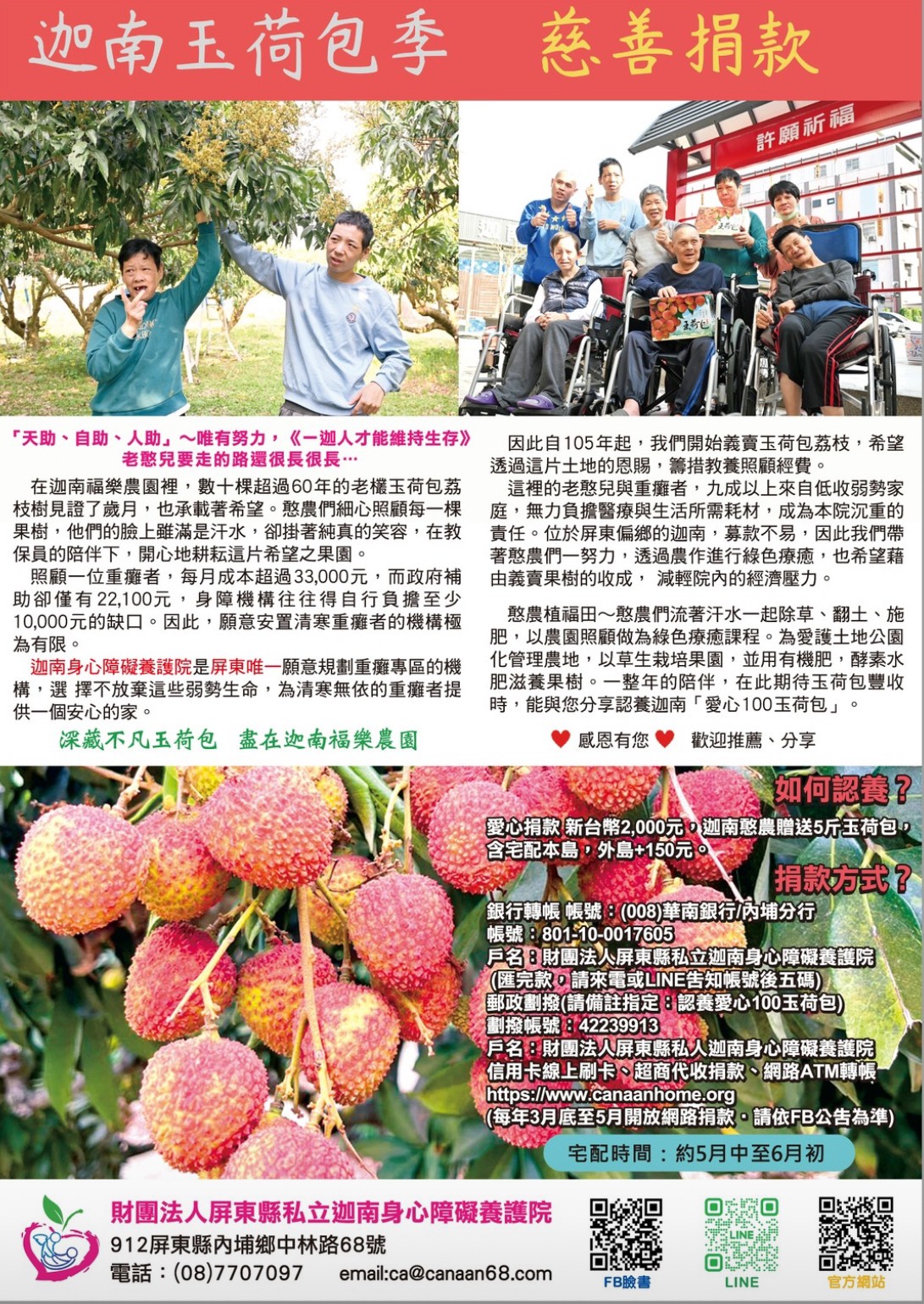 「2025迦南玉荷包季」邁入第十年~慈善捐款起跑了!!