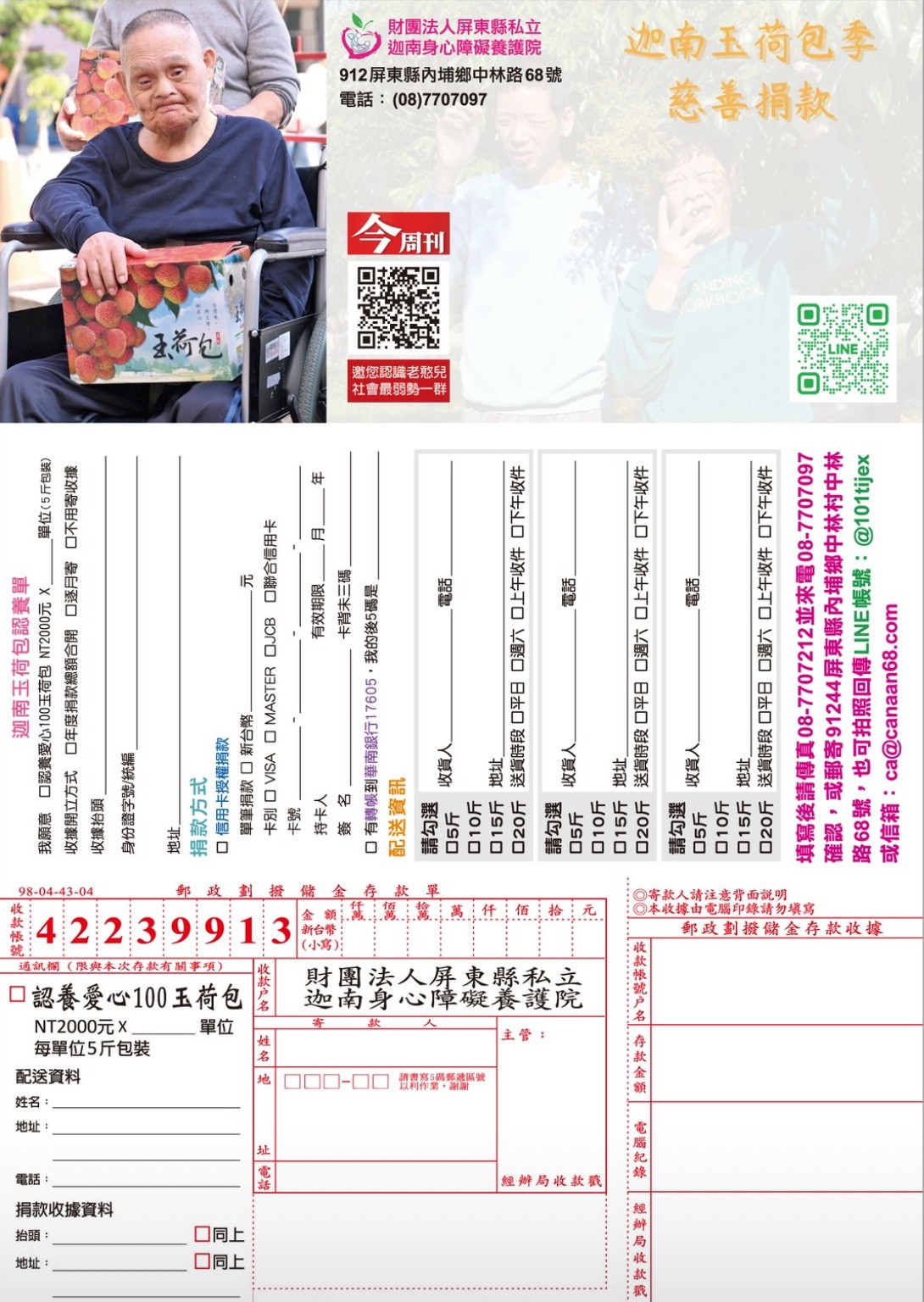 戶名:財團法人屏東縣私立迦南身心障礙養護院